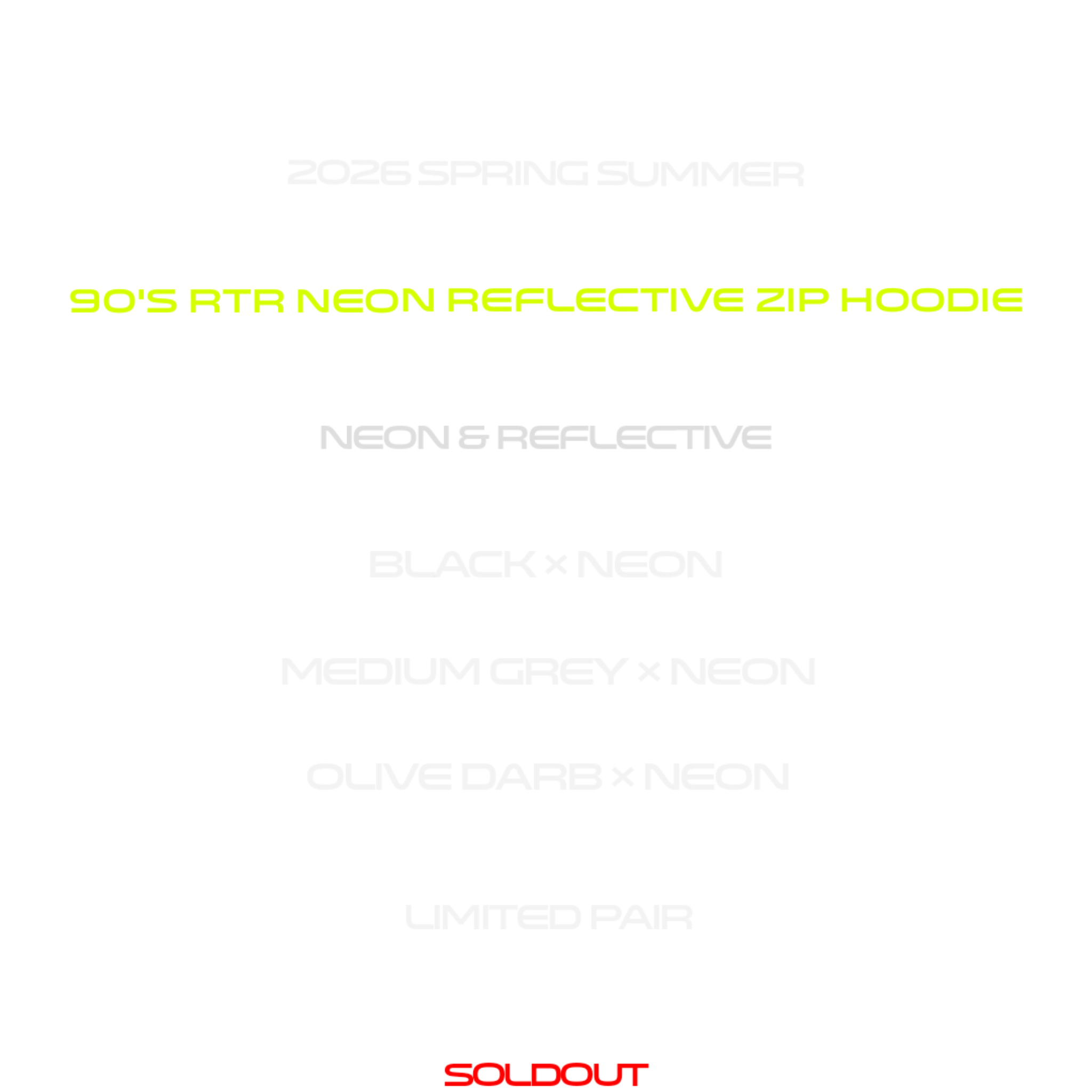 90's RTR NEON REFLECTIVE ZIP HOODIE(MEDIUM GREY)