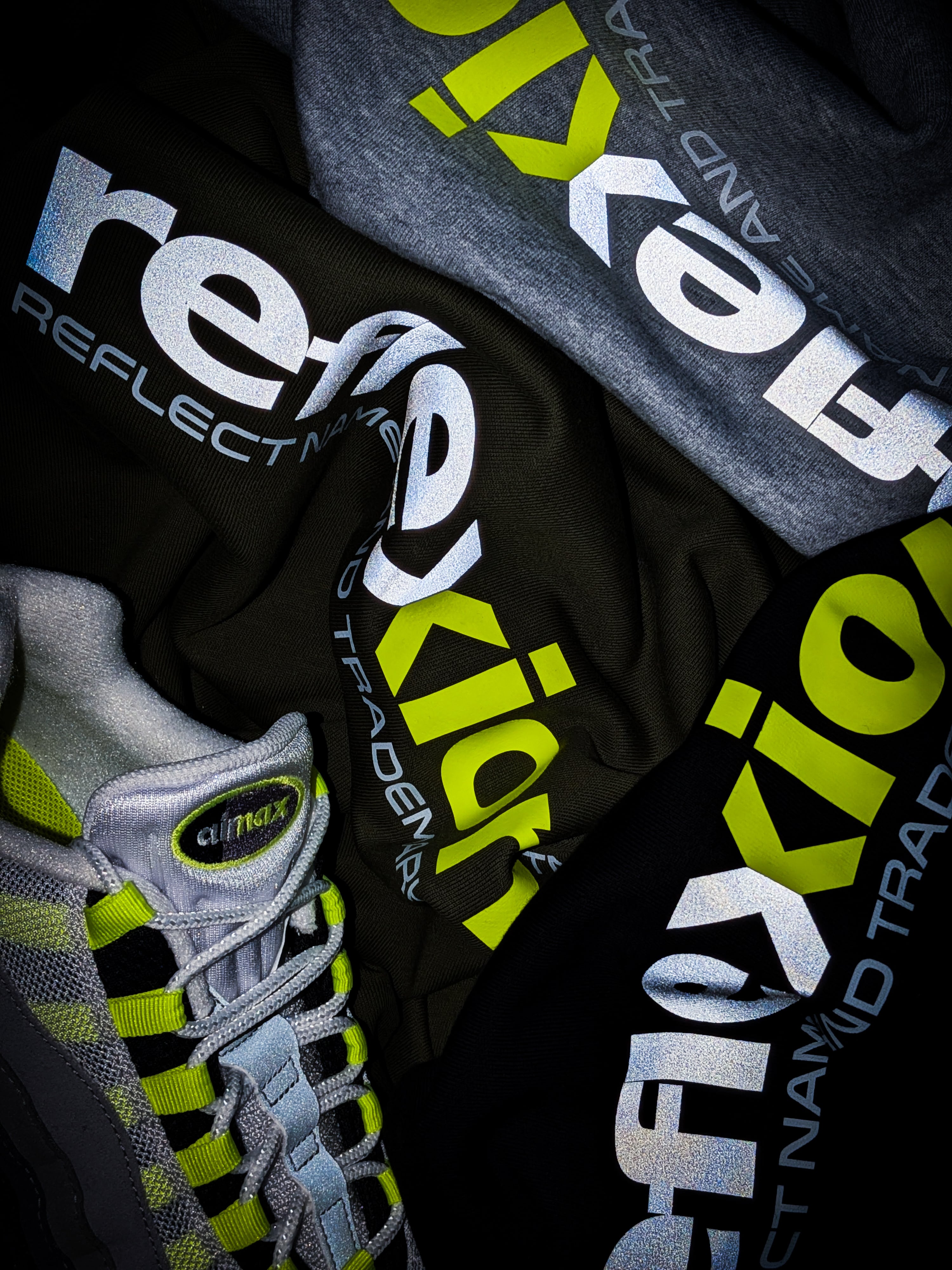 90's RTR NEON REFLECTIVE ZIP HOODIE(BLACK)