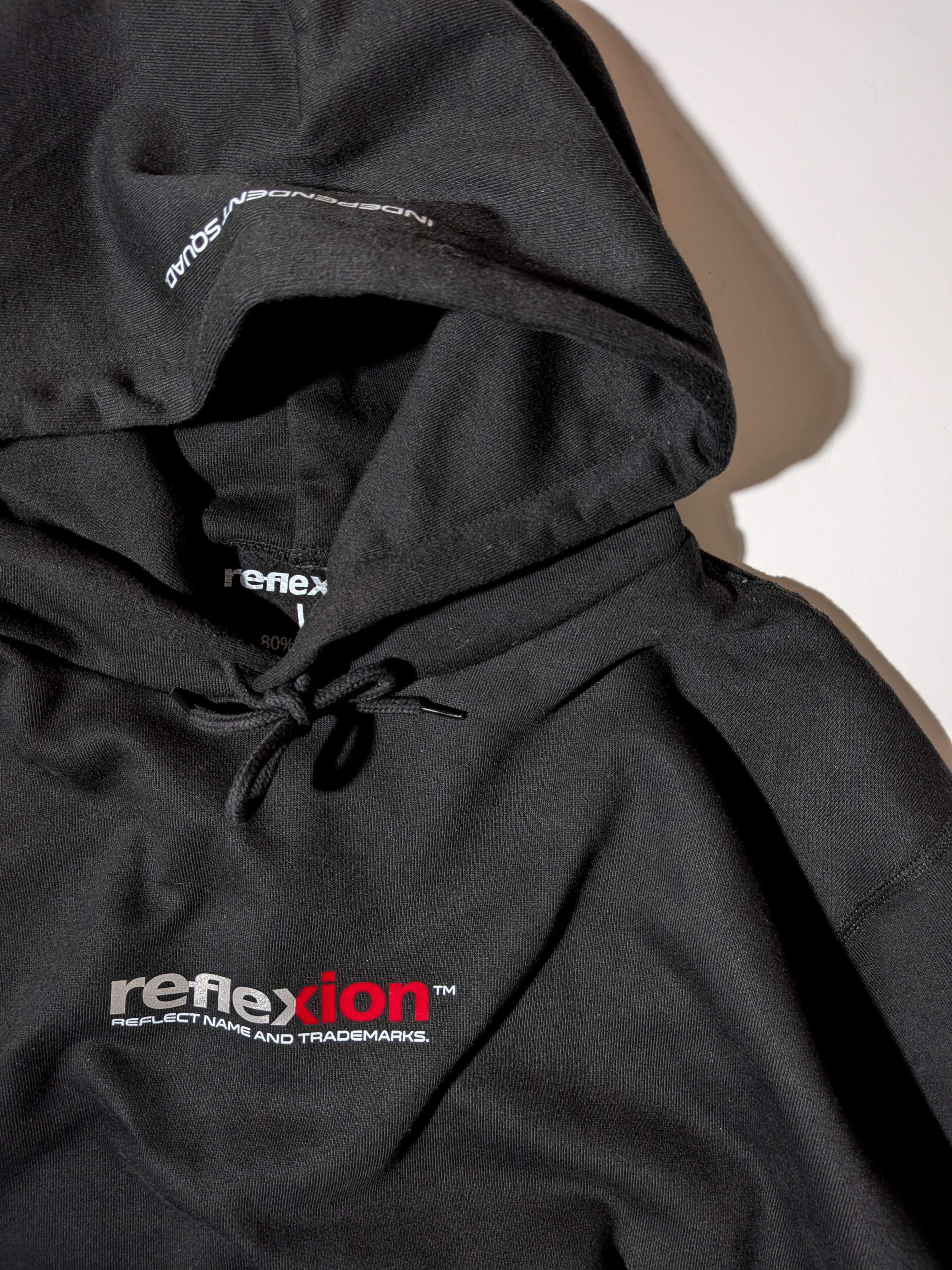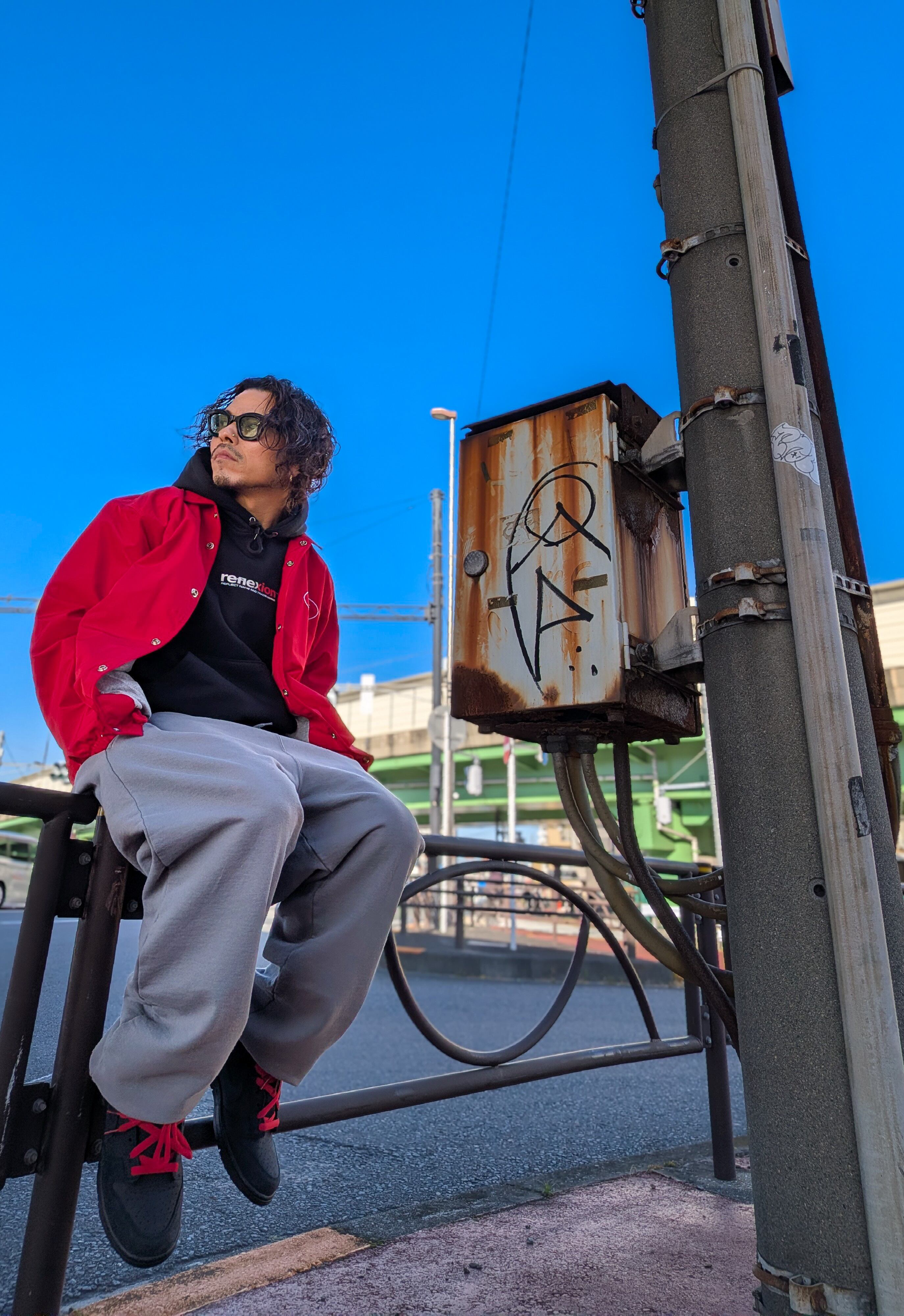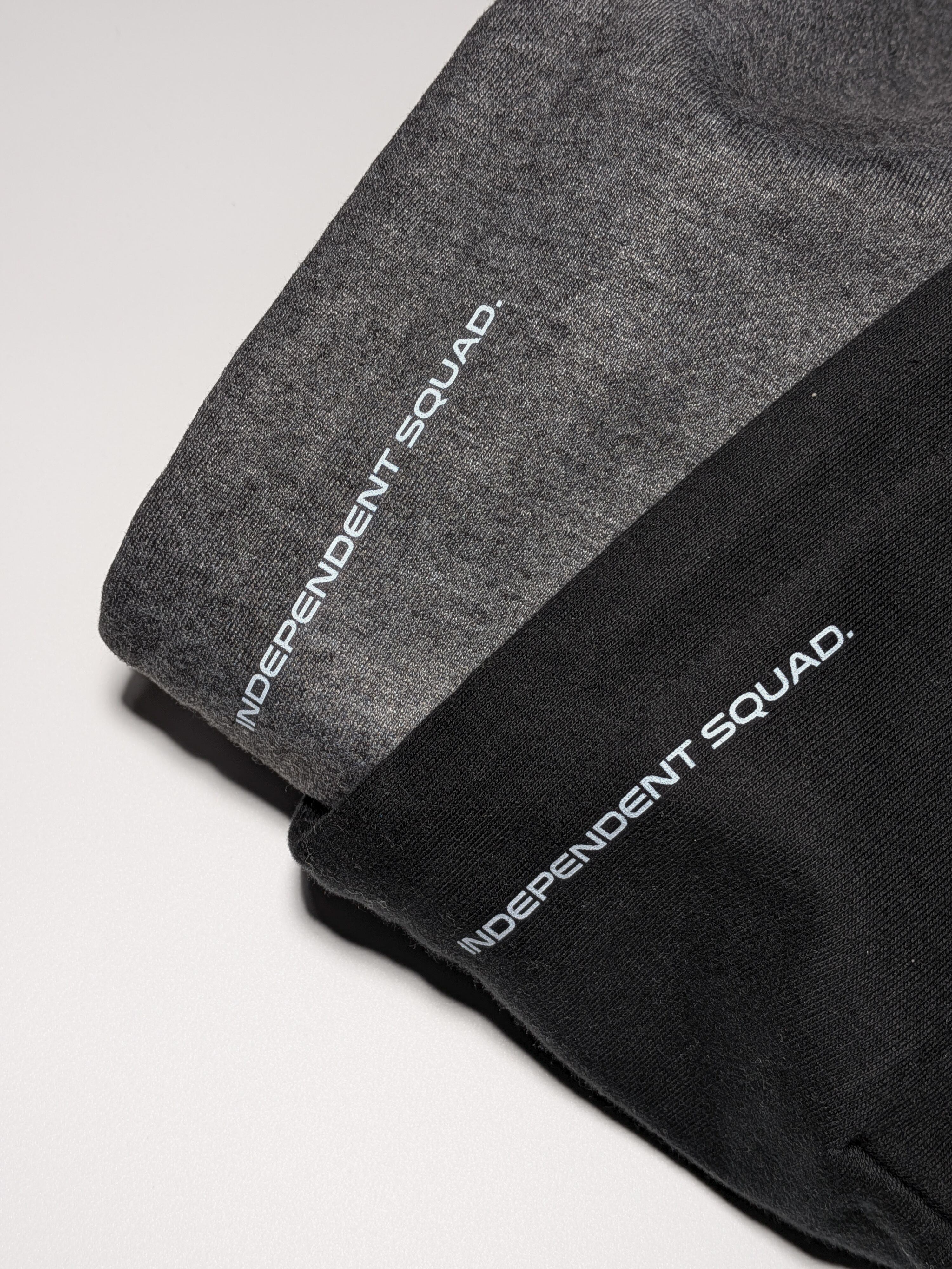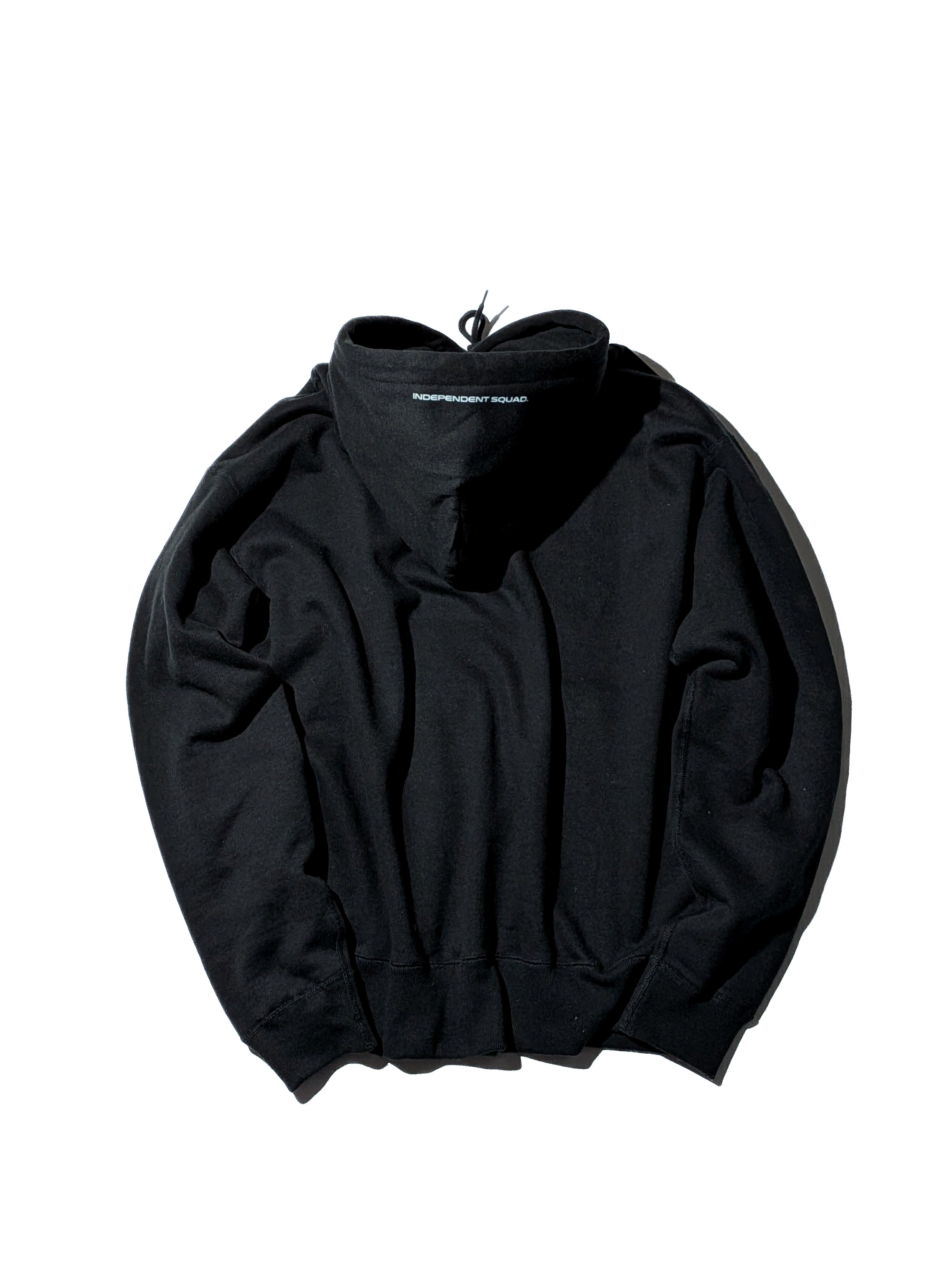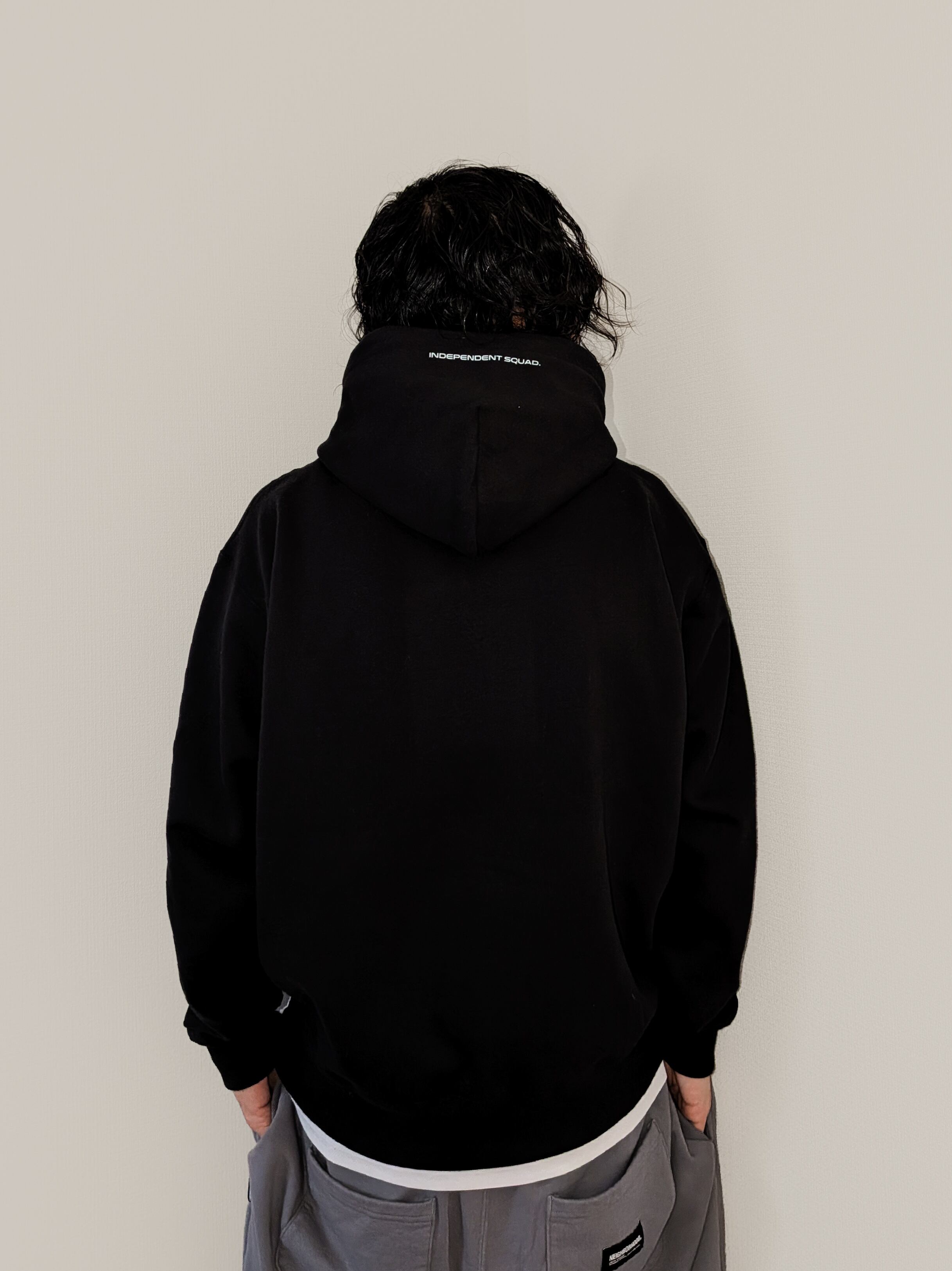 アウターの下でのフロントのアクセント位置バランスに加え、フードを出した際にも" independent squad. "のメッセージでバックショットの存在感もしっかり与えられるデザインとなります。