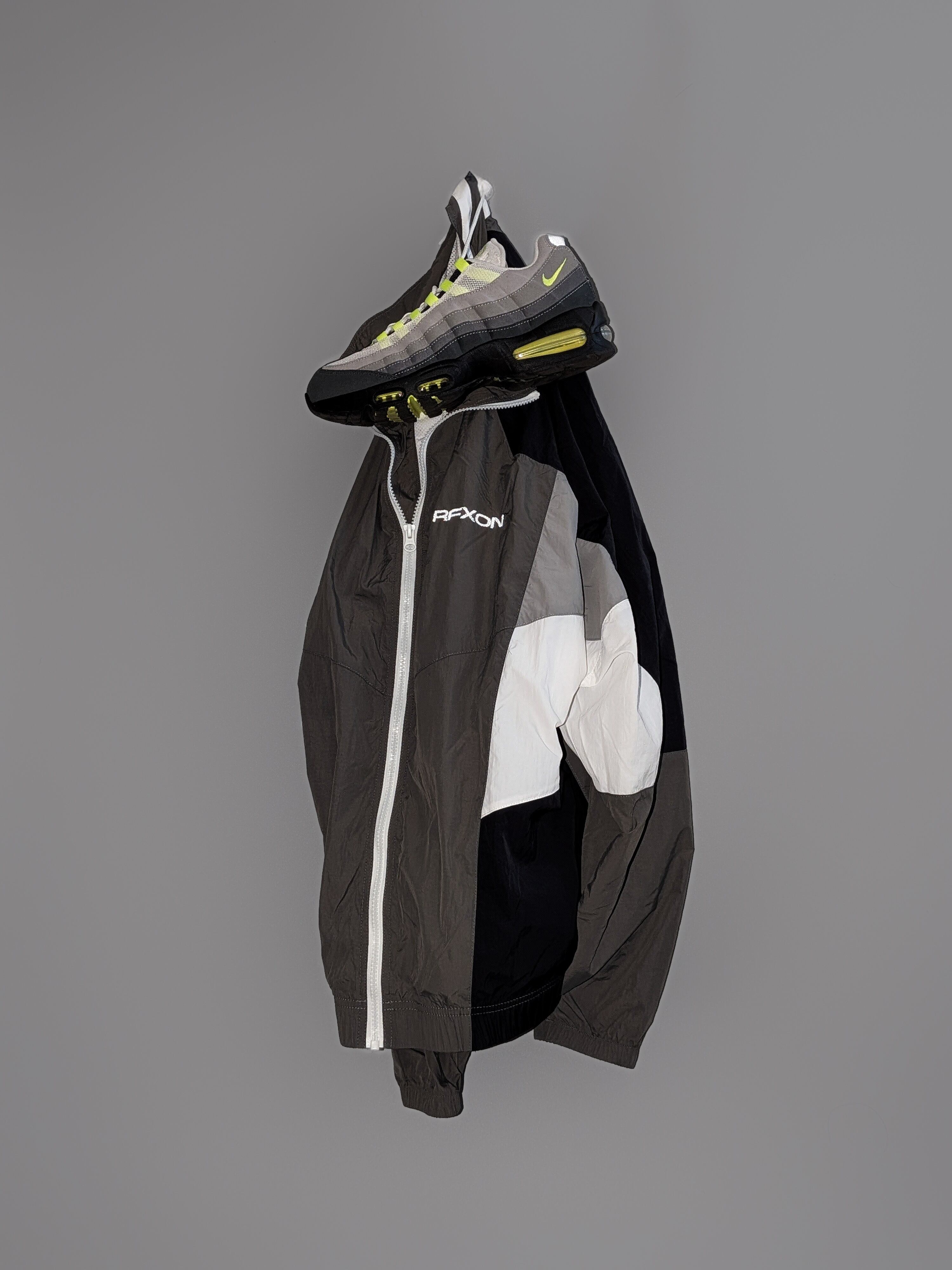 90年代 ストリート スポーツ 古着シーンに爆発的ムーブメントを起こしたジャケットを現代にフラッシュバックさせた90's WORM UP GRADIENT&REFLECTIVE JKT。