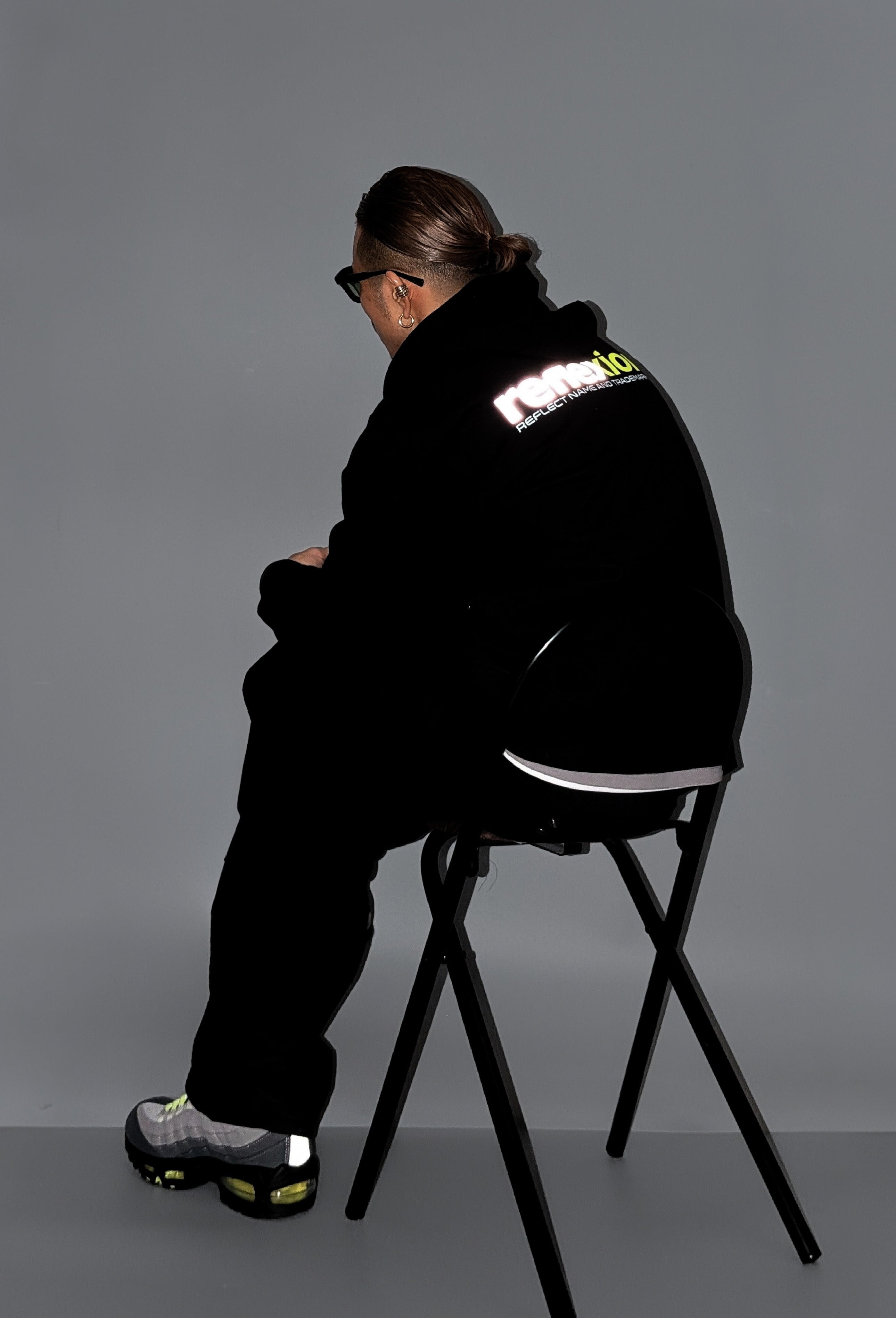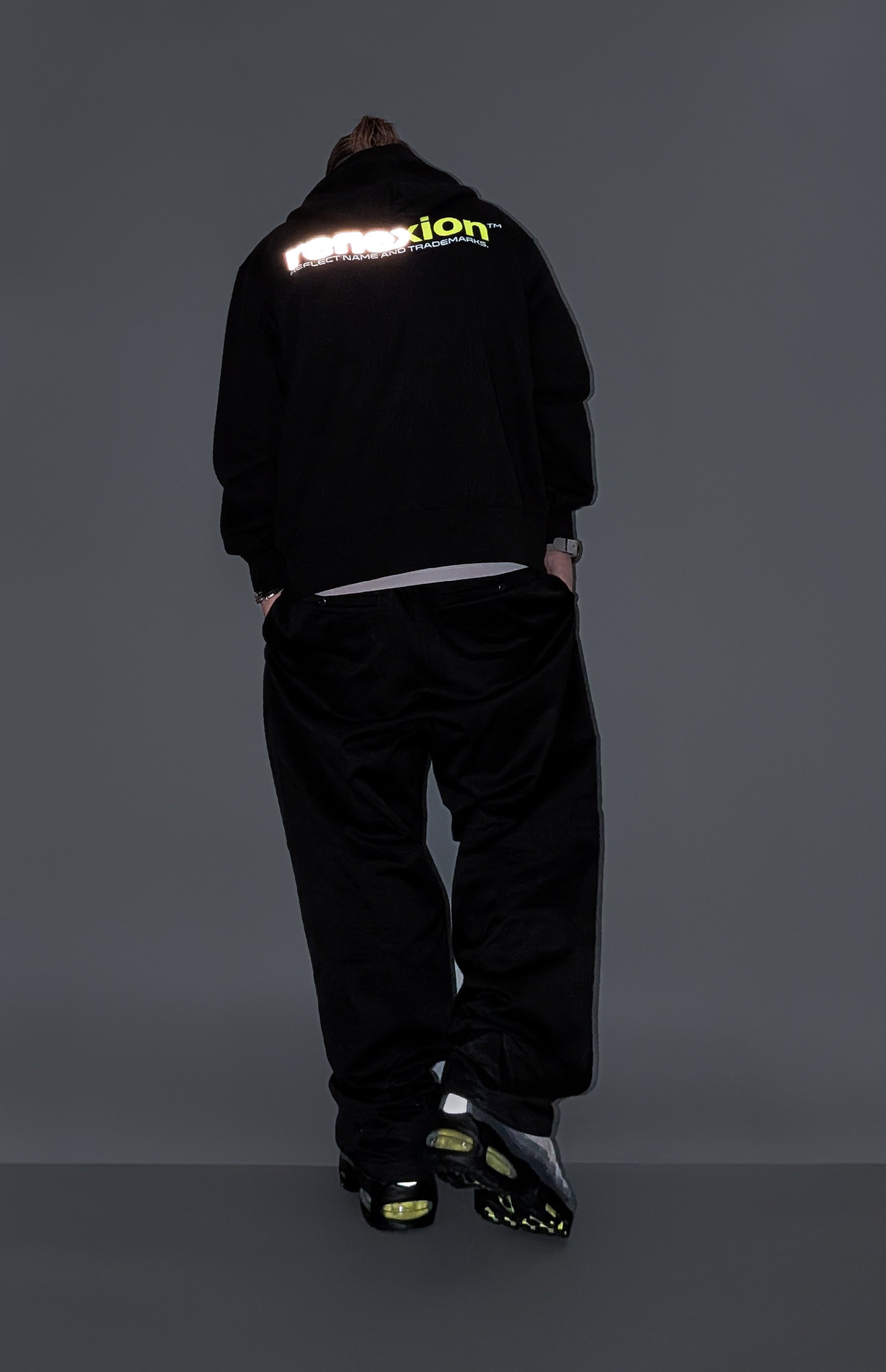 90's RTR NEON REFLECTIVE ZIP HOODIE(BLACK)