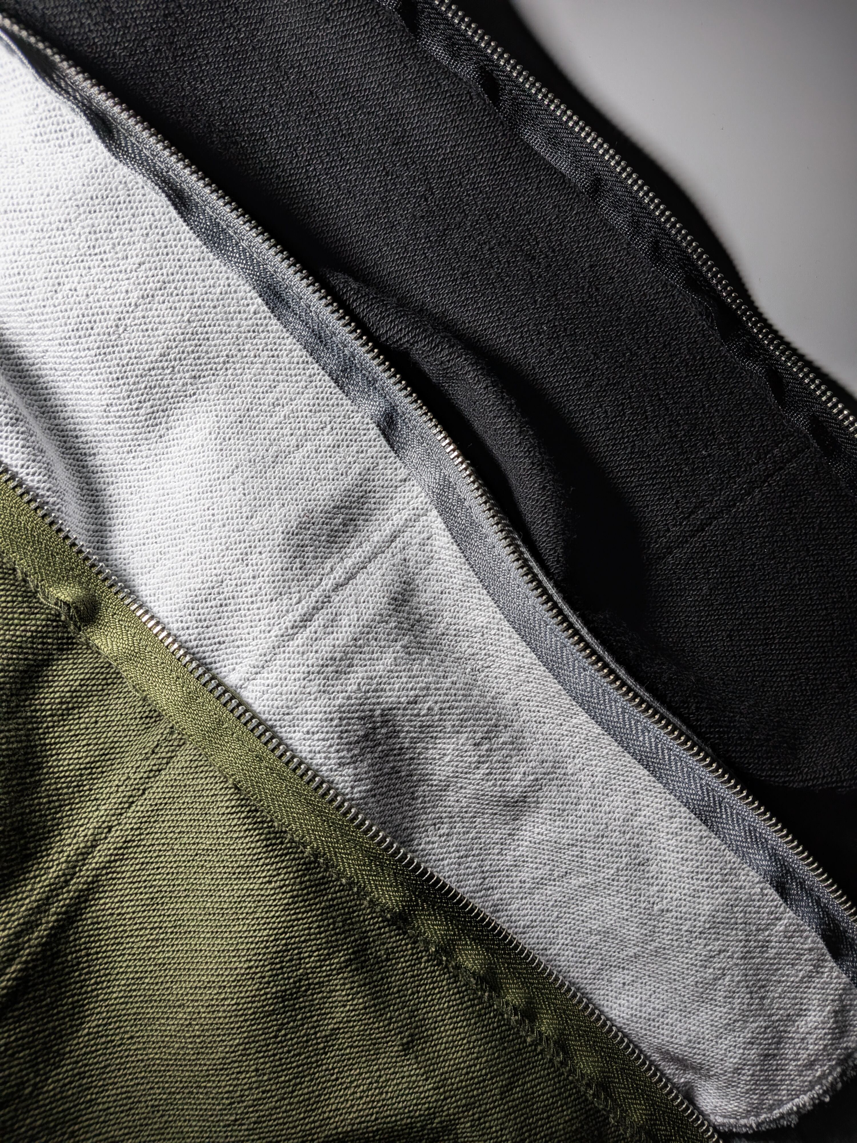 フロントポケットには高密度織ネーム、滑らかで輝くスライダーメタルジップを使用。