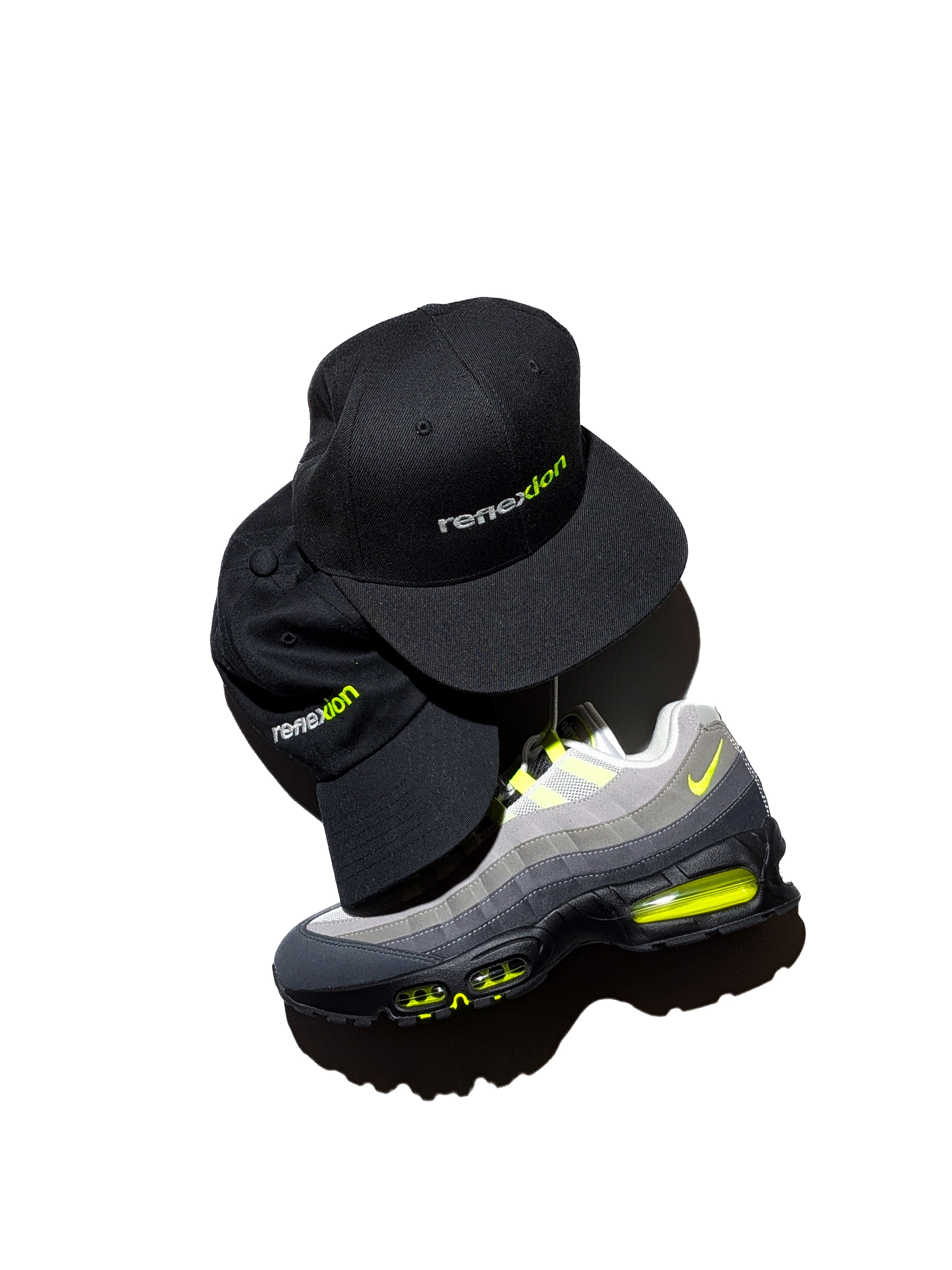 REFLEXION™ LOGOにお馴染みのREFLCTIVE素材と抜群の発色と立体感ある蛍光ネオンイエローを今回は特殊な糸により刺繍したスペシャルエディション。