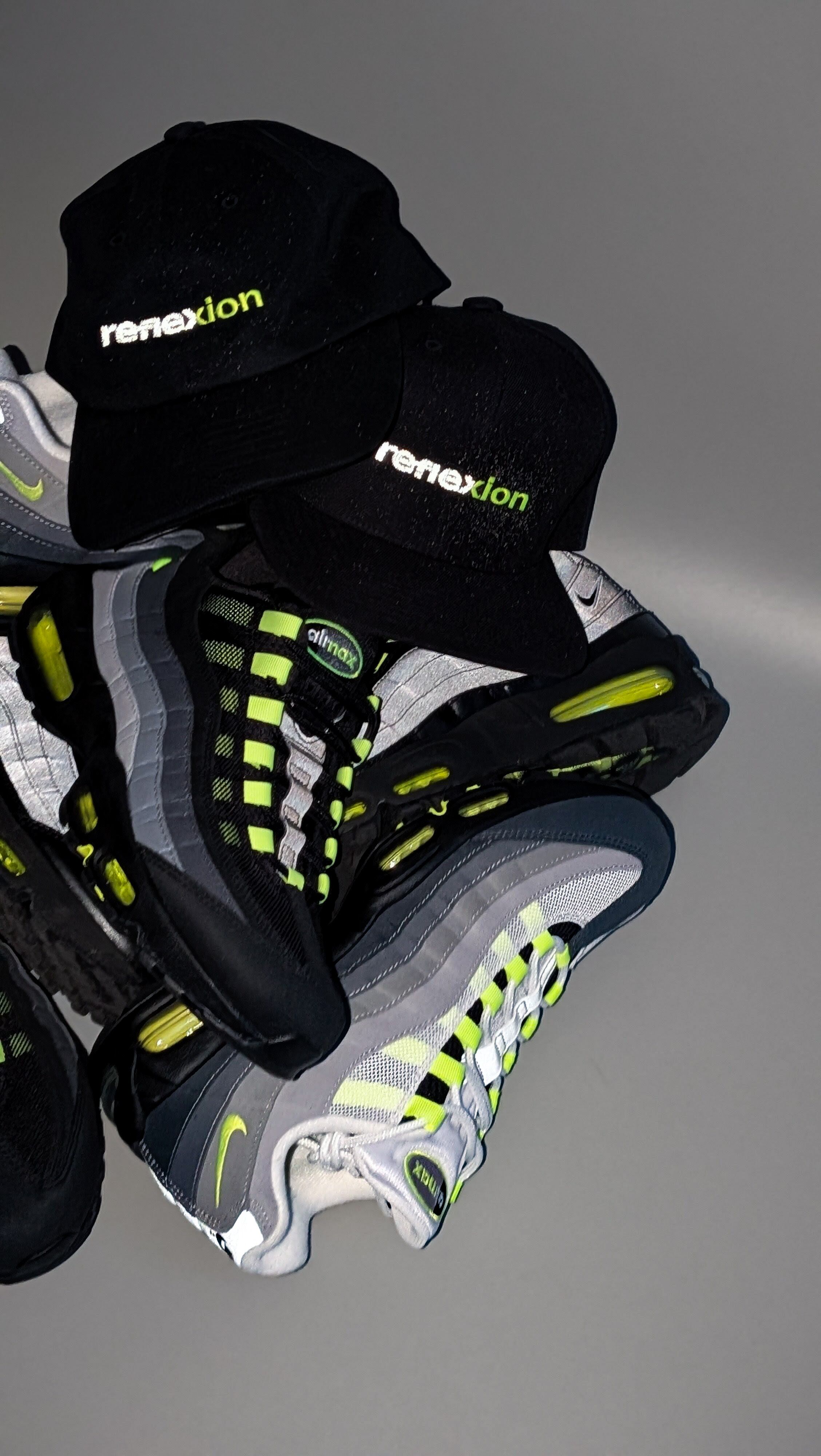 REFLEXION™ LOGOにお馴染みのREFLCTIVE素材と抜群の発色と立体感ある蛍光ネオンイエローを今回は特殊な糸により刺繍したスペシャルエディション。
