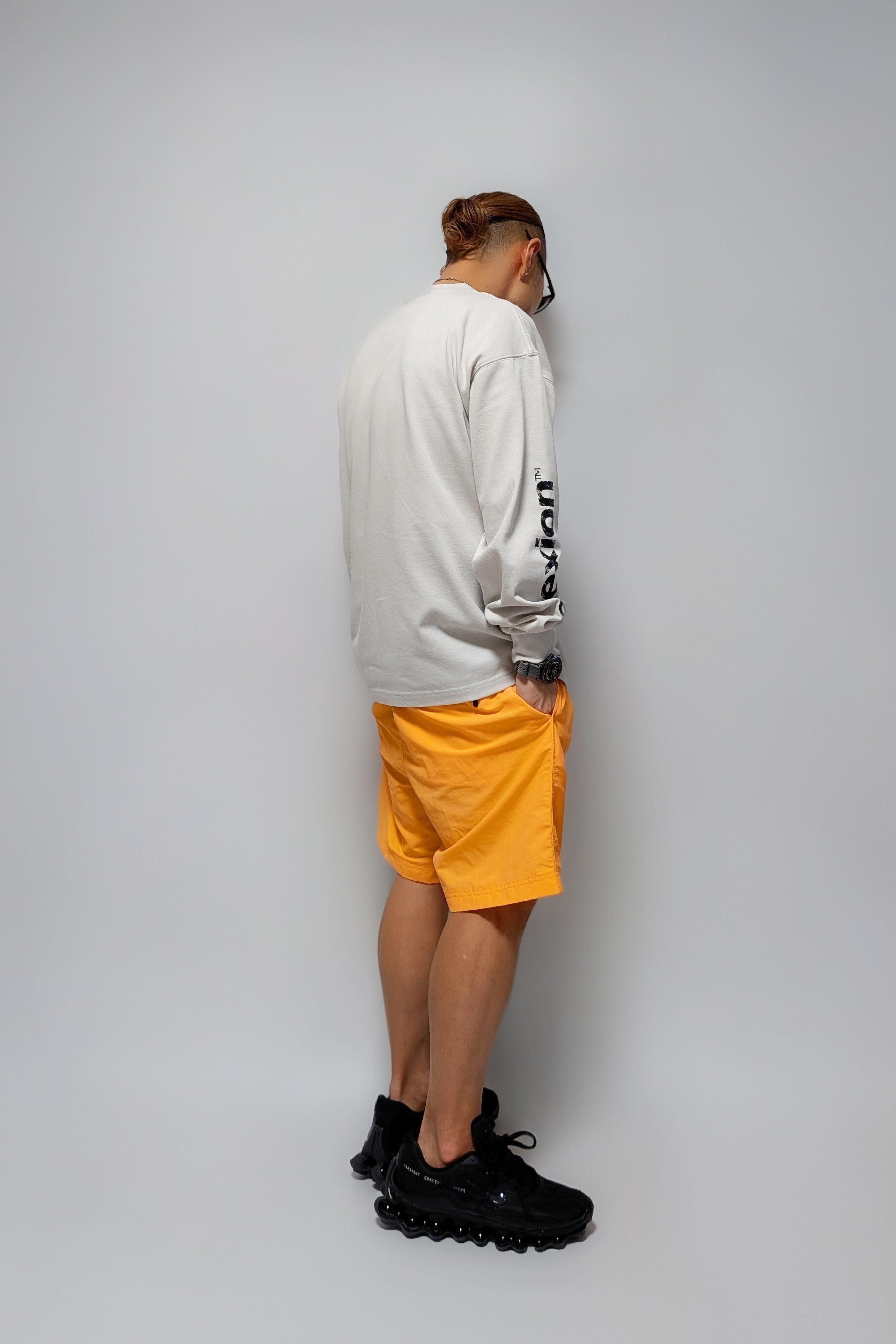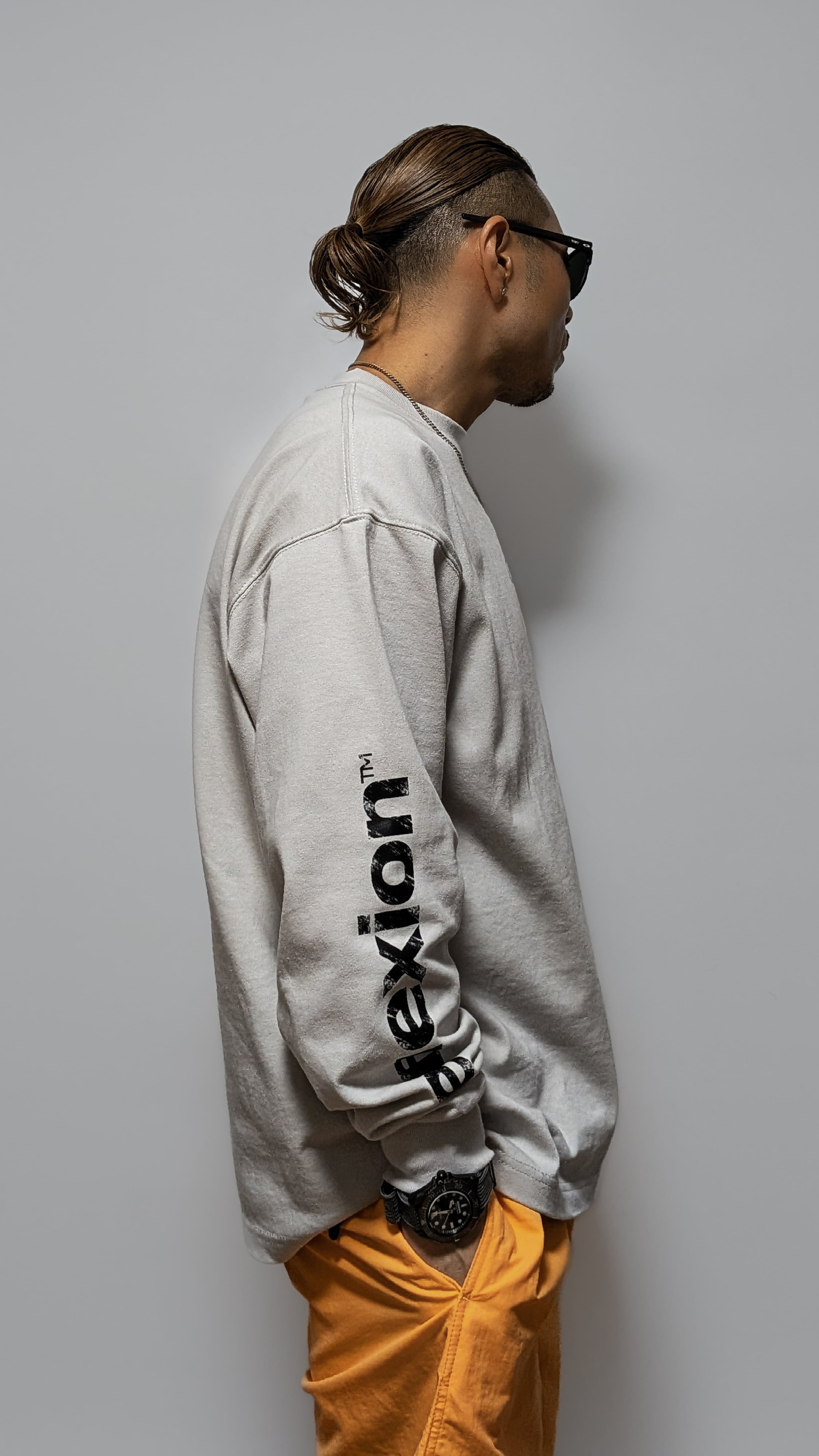 一般的にL/S TEEは両袖にプリントされるデザインを敢えて片側のみにプリント。REFLEXION™らしいミニマム感を表現。