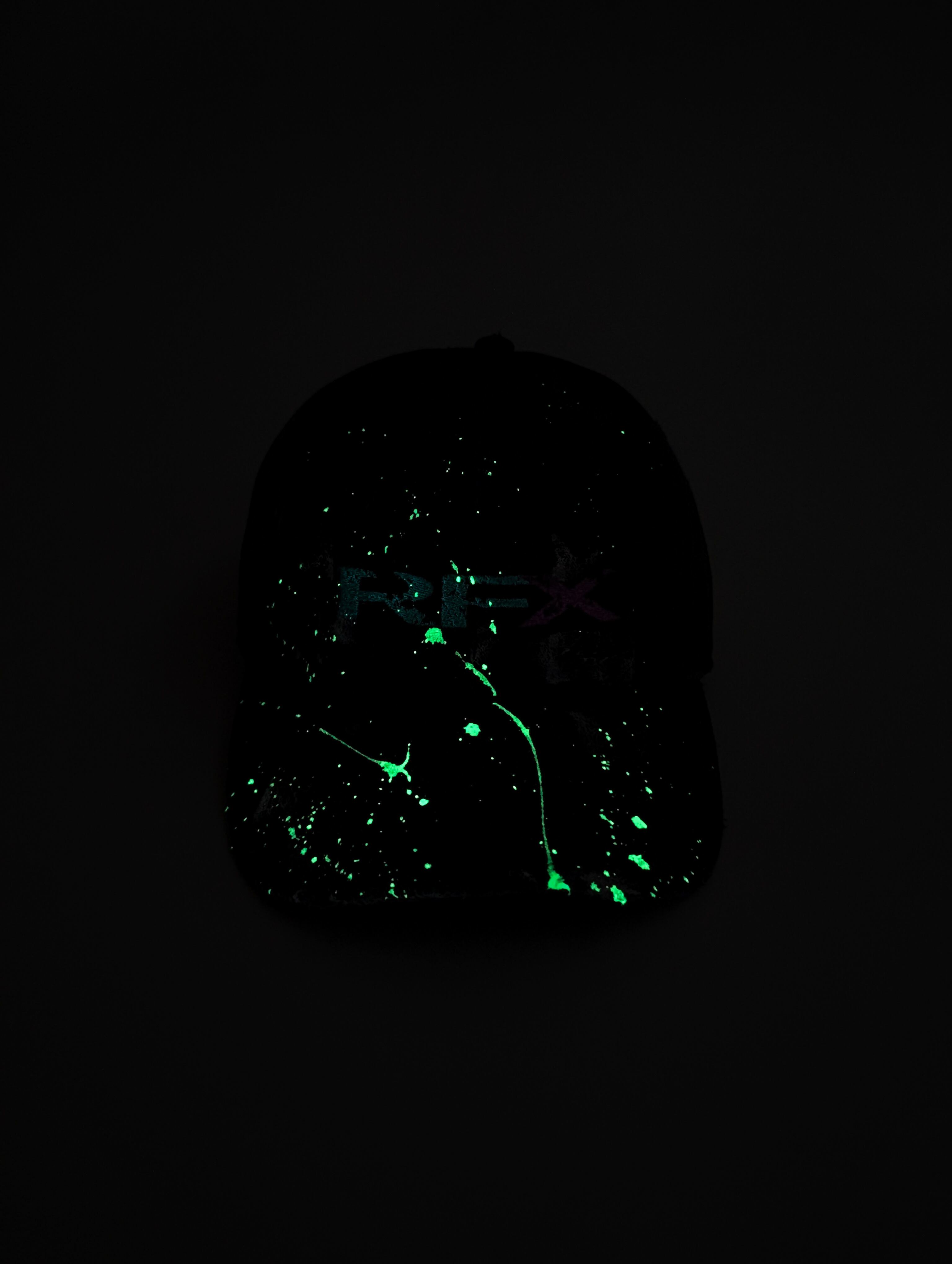 更にRFXのスクラッチロゴを刺繍で再現し、随所にはREFLECTIVEとGROWによるペインティング加工によりフラッシュする暗闇で瞬き、フラッシュの無い暗闇ではGROWスプラッシュが瞬く仕様。