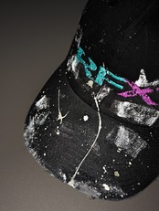 手作業によりウォッシュ ダメージに加えドリップ ブリーチを施し