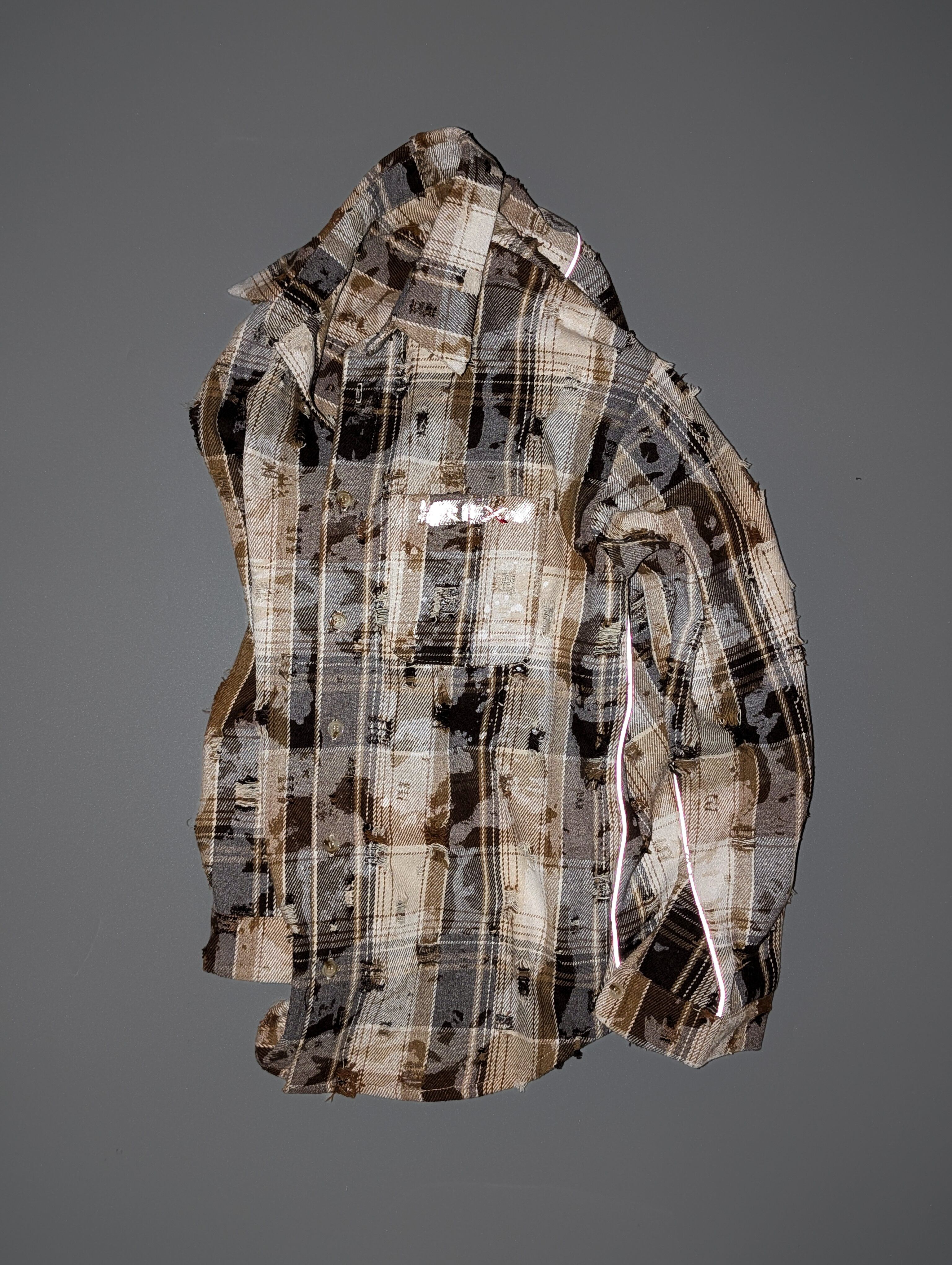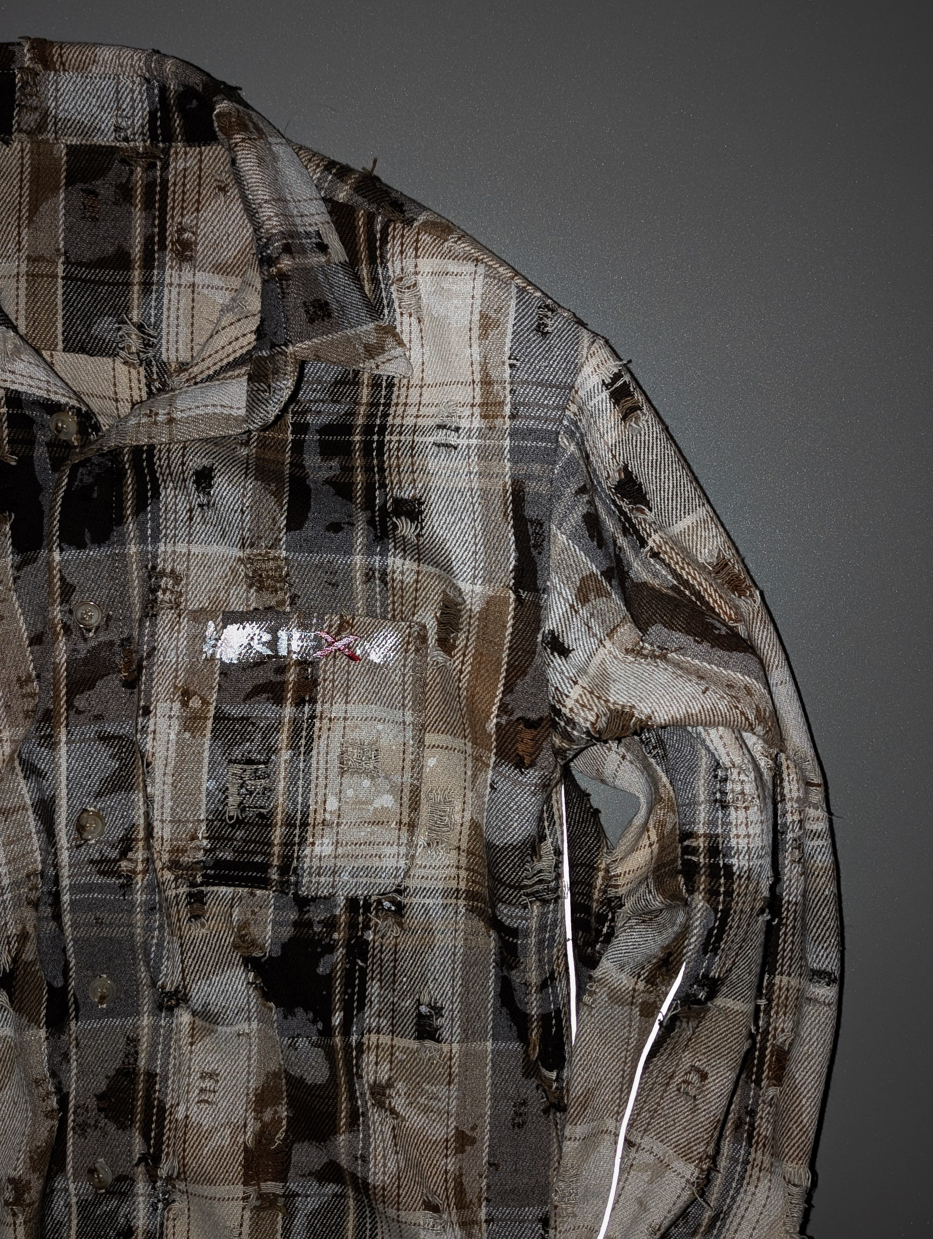 更にボディー全体にはフルDAMAGE加工、フロントポケットにはEMBROIDERY RFXにスプラッシュペイント、REFLECTIVEペイントを施す。 身頃ライン 袖裏ライン 後ろ肩幅ラインにREFLECTIVEパイピングを施すREFLEXIONらしいギミック。
