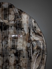 シルエットは程良いルーズさにフロントとバックの着丈を変更。身幅はボタンを開いた状態(基本開いた状態での着用がベスト)で1番綺麗に見える幅感にセット。フロントからのカットソーの見えるレイヤーバランスと後ろからのラウンドの見えるバランスを緻密に計算した仕上がりになっております。