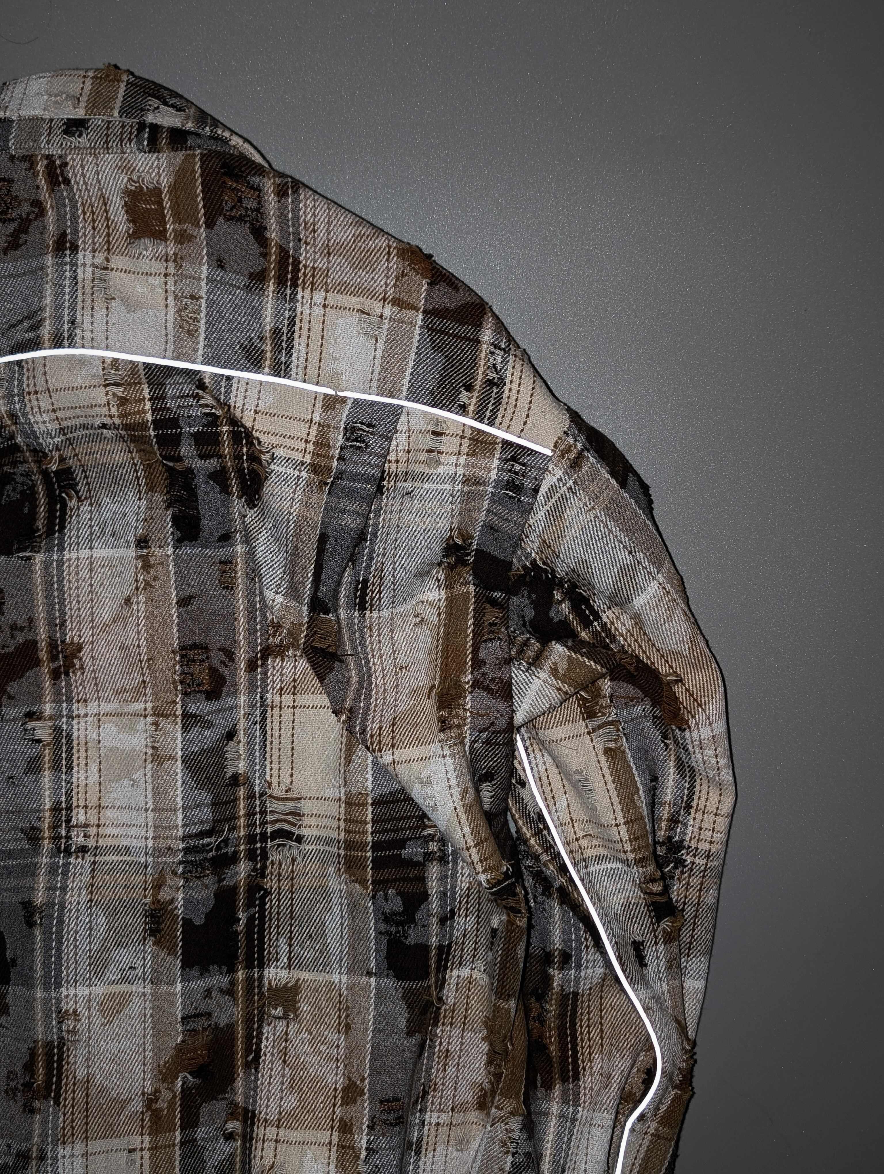 更にボディー全体にはフルDAMAGE加工、フロントポケットにはEMBROIDERY RFXにスプラッシュペイント、REFLECTIVEペイントを施す。 身頃ライン 袖裏ライン 後ろ肩幅ラインにREFLECTIVEパイピングを施すREFLEXIONらしいギミック。