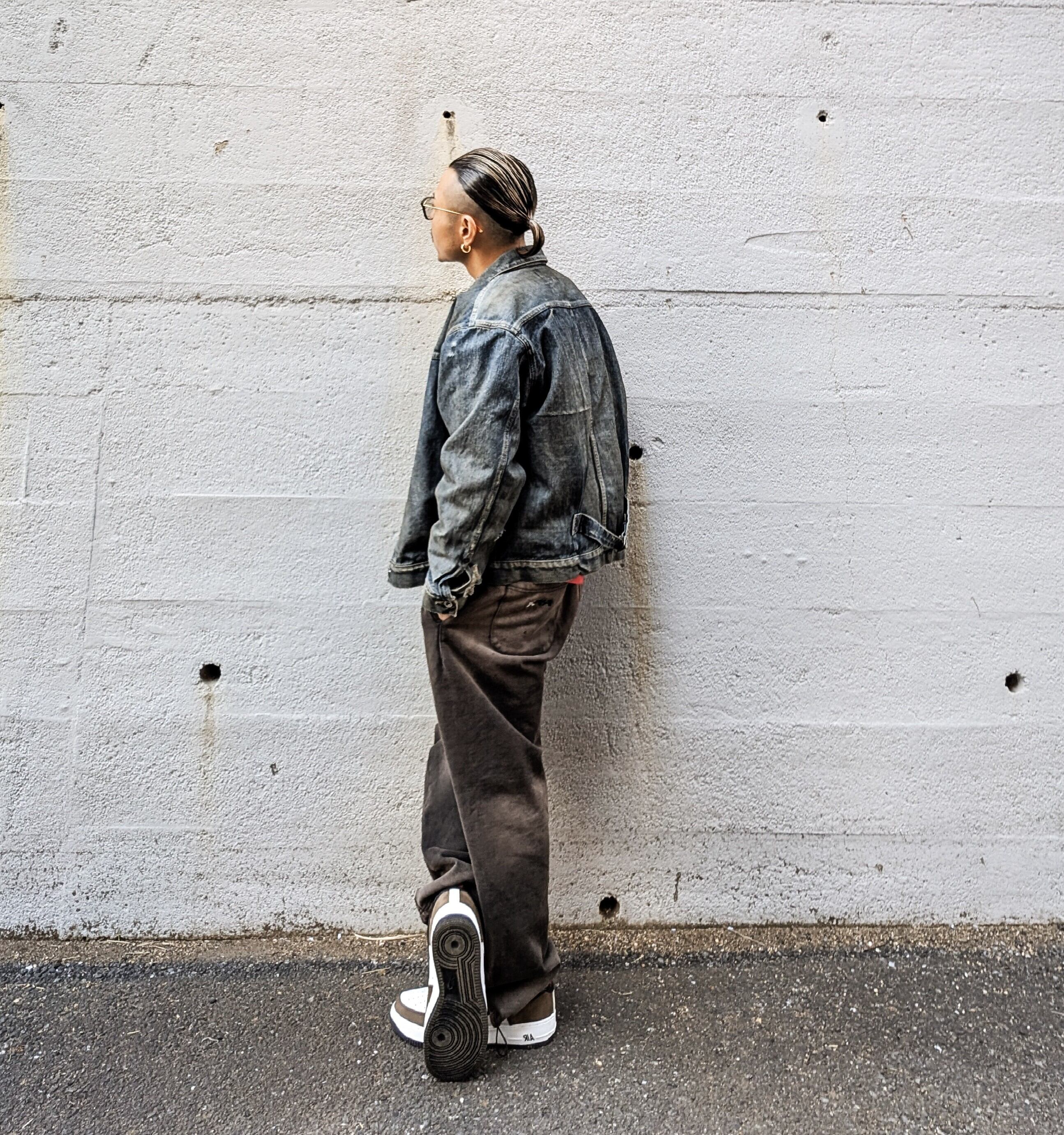 デザイナーの拘りである"オーバーサイズシルエットを立体的にオールシーズン履ける"をコンセプトに、肉厚の16ozボディーを採用。厚みはありながらも裏地は季節を問わない裏パイル地にしている為、オールシーズンどんなスタイリングでも着用可。何年も履きこんだかの様なハードウォッシュ加工