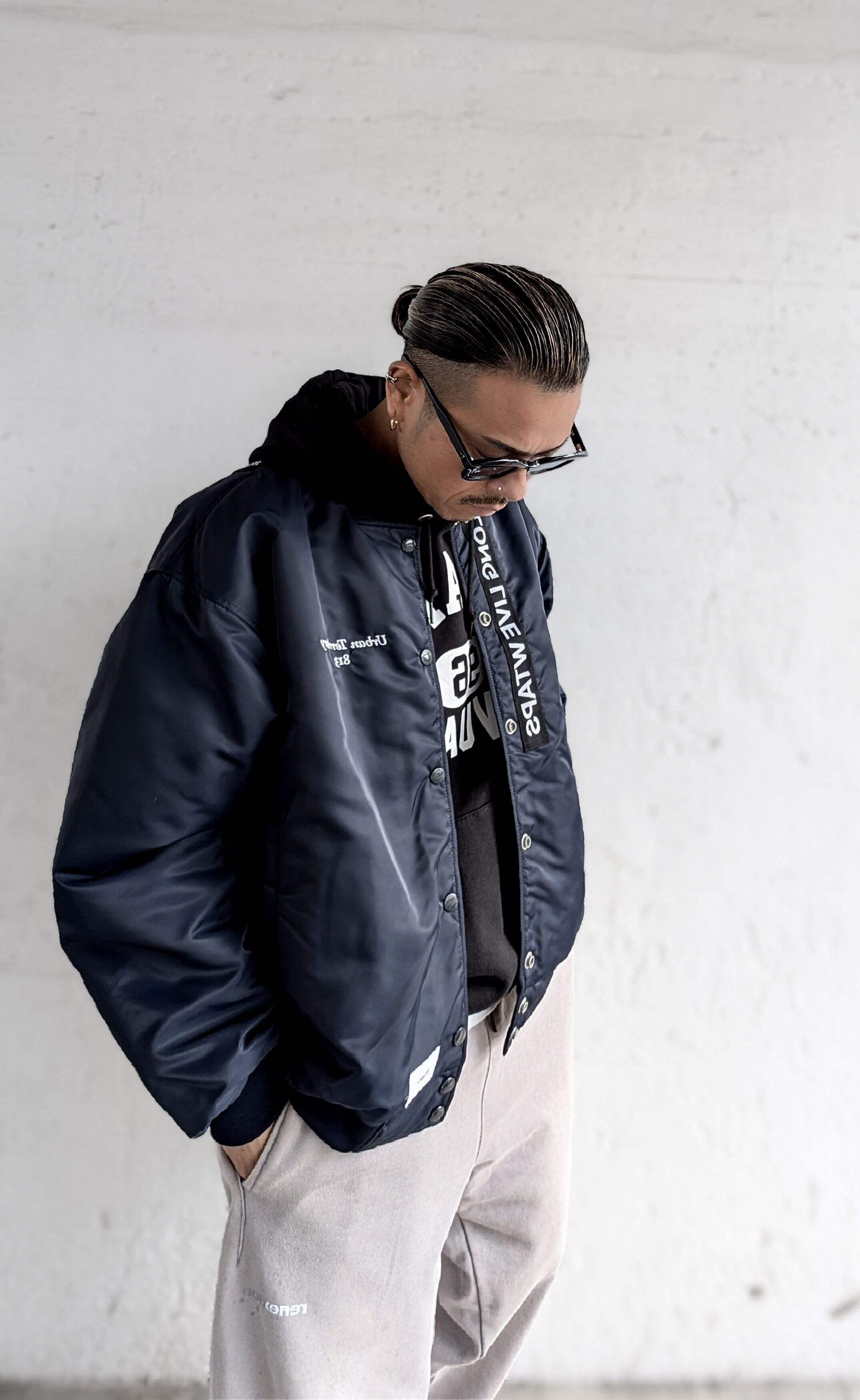 MODEL 165cm SIZE:L(オーバーサイズにより大きめの仕上がりになります)